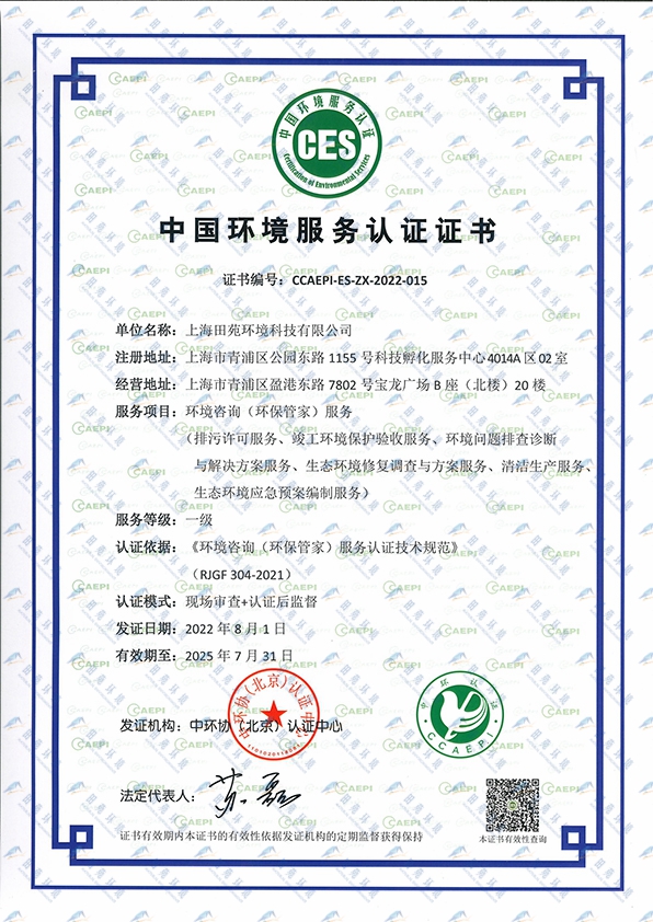 《中國環(huán)境服務(wù)認證證書【環(huán)保管家一級】》